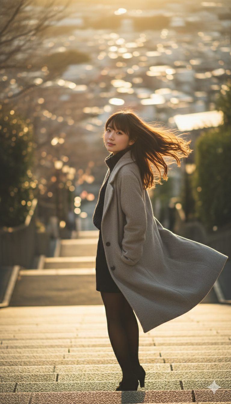 「登ってごらん」 風がそう言った。 夕暮れの階段。 逆光が、金色に輝いている。 グレーのコートの裾が揺れる。 一段目に、足をかけた。 ポケットに手を入れたまま。 焦らない。 自分のペースで、登る。 三段目。 少し息が上がる。 昔の自分を思い出す。 あ […]
