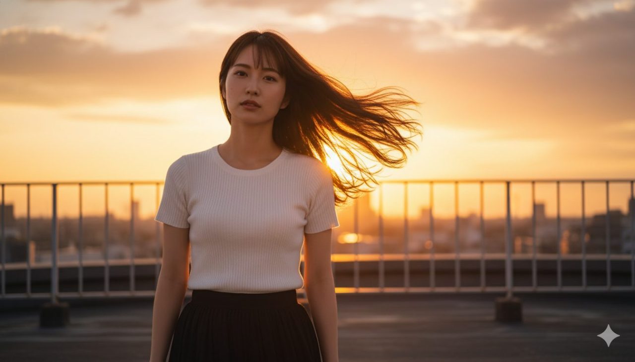 スカートが揺れるたび、心の奥の小さな灯りが滲む。