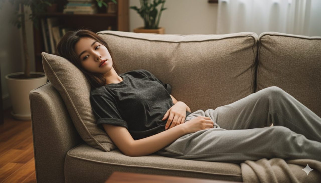 部屋にひとり残ったyunaは、練習で疲れた身体を休めるように、