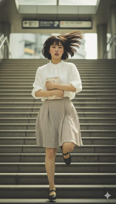 駅の長い階段。いつもはエスカレーターを使う。でも今日は、そんな余裕はない。