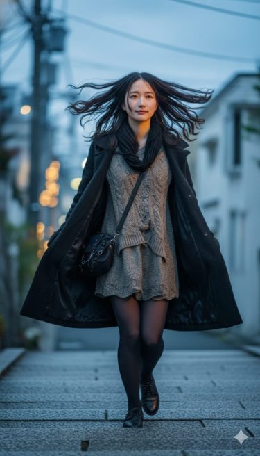 三段目で立ち止まる。 振り返ると、街の灯りが揺れている。 温かくて、少し切ない。