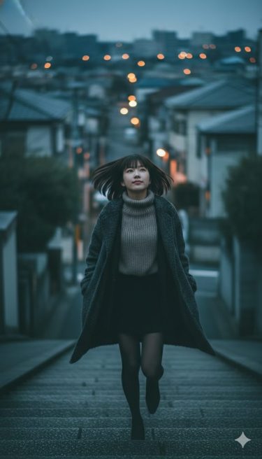 ブルーアワーの住宅街。 古い階段を見つけた。 一段、登る。