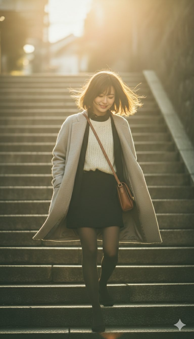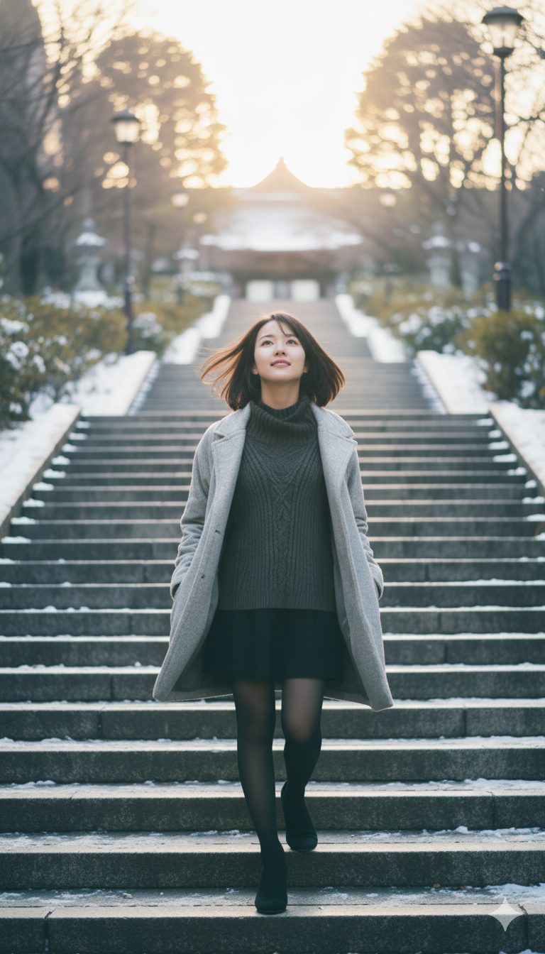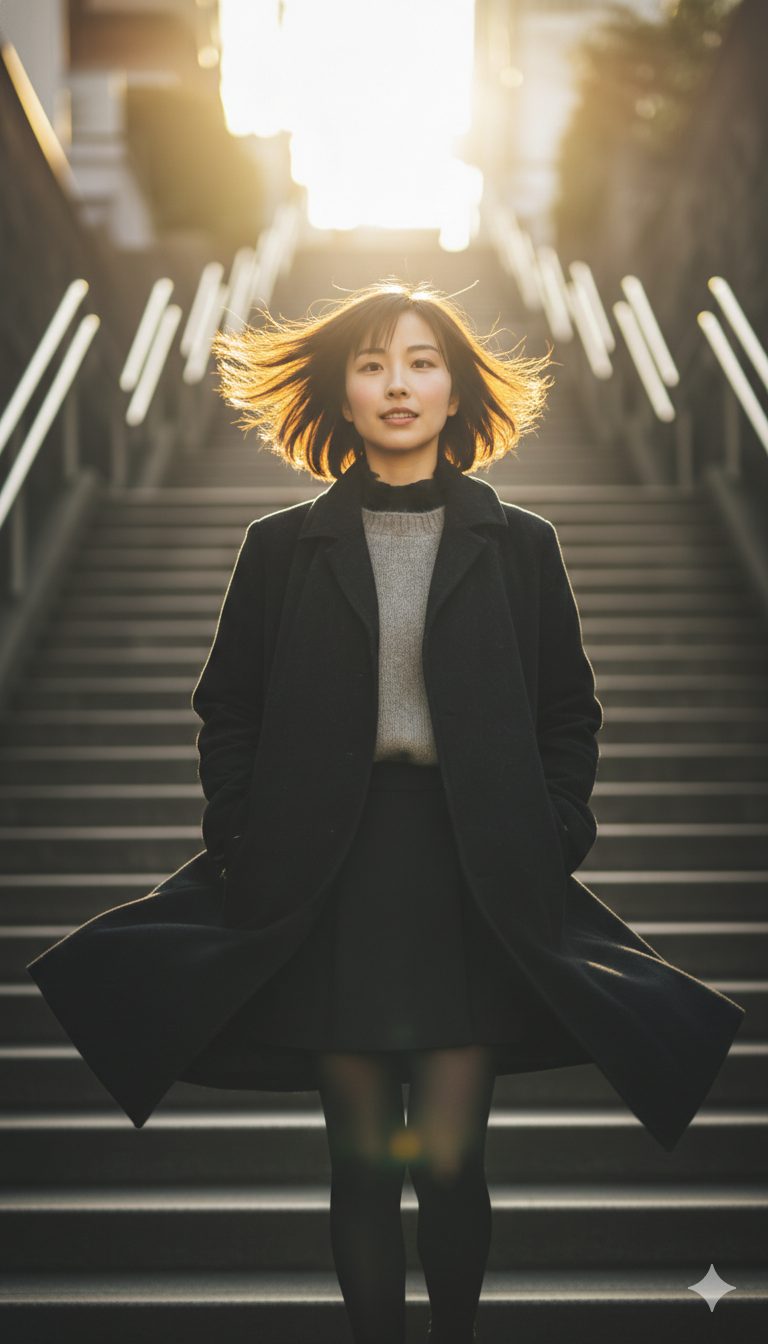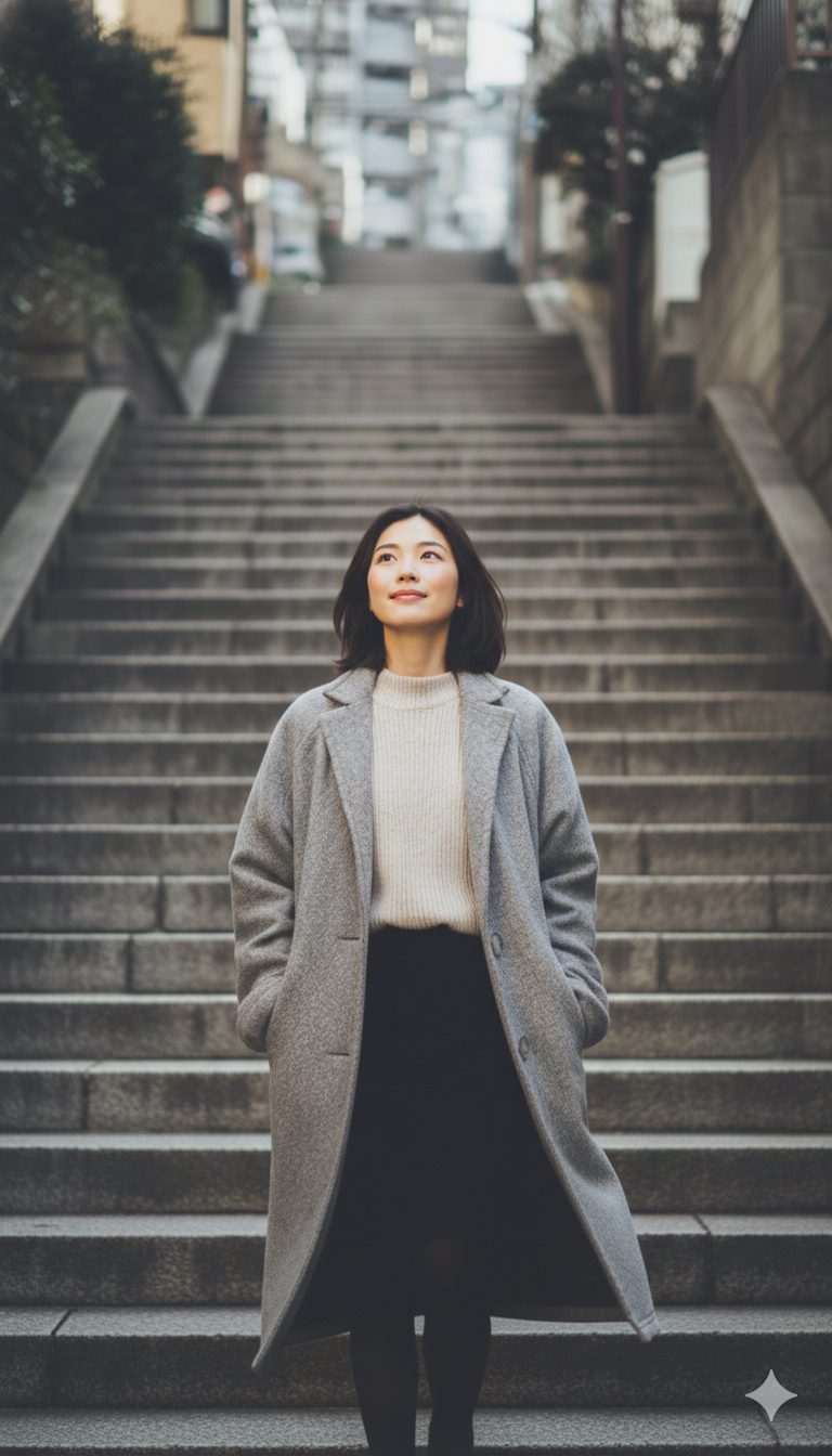 風が言った。「それでいいんだよ」と。 冬の階段。グレーのコートを纏って。 手を、ポケットに入れたまま。 ゆっくり登る。急がない。 一歩、踏み出す。 階段に足をかける。ゆっくりと。 また一歩。焦る必要はない。 自分のペースで、いい。 階段を登る。一段ず […]