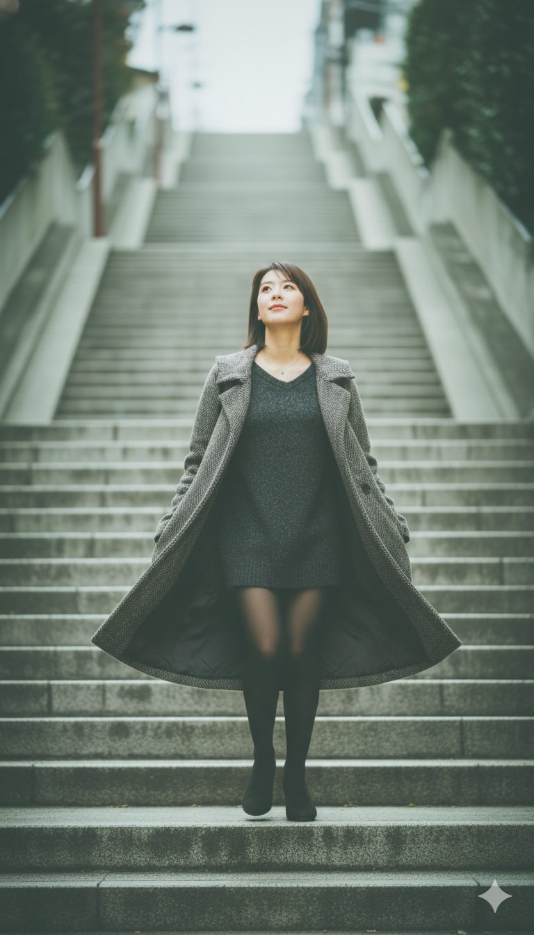 風が言った。「それでいいんだよ。自分のペースで」と。 冬の階段。グレーのカーディガンを纏って。 ゆっくり登る。急がない。 昔は、走って登っていた。 早く着きたくて。 誰よりも先に。 でも今は、違う。 自分のペースで、登る。 一歩、踏み出す。 階段に足 […]